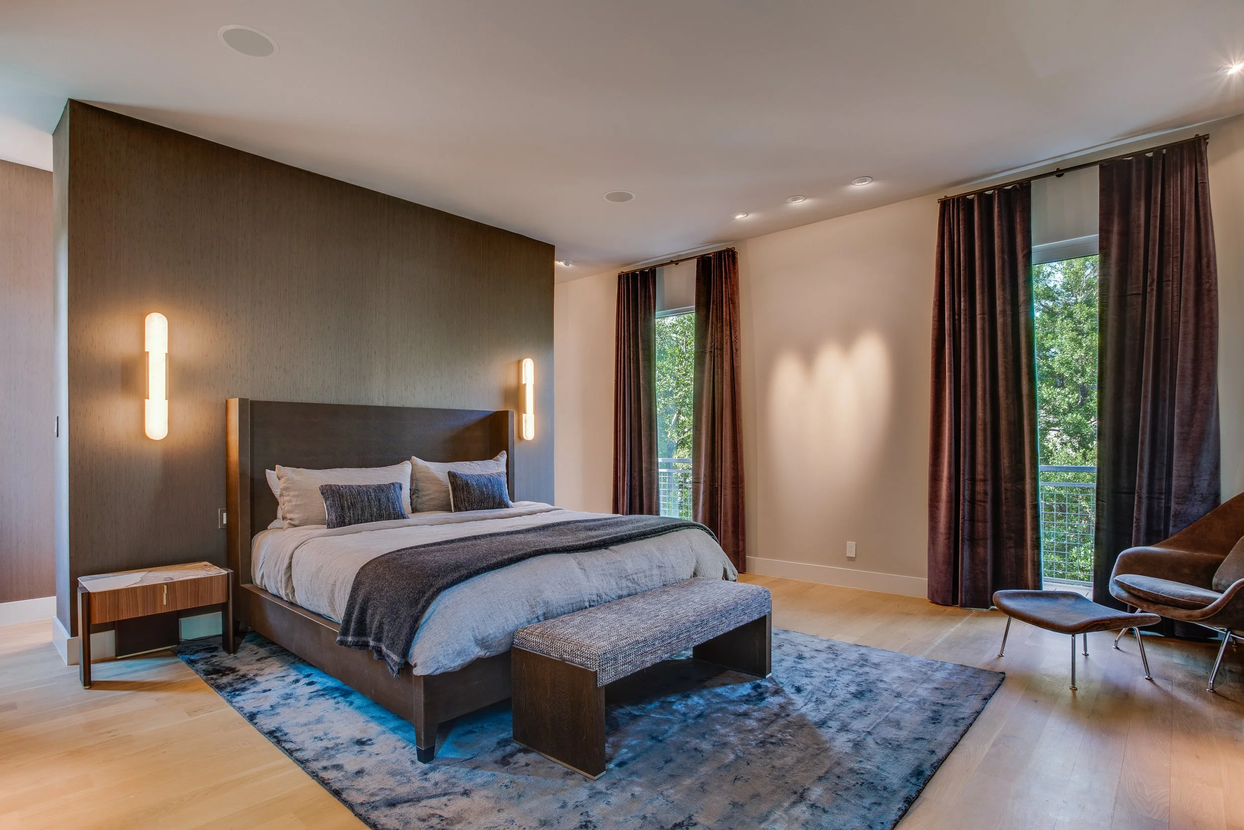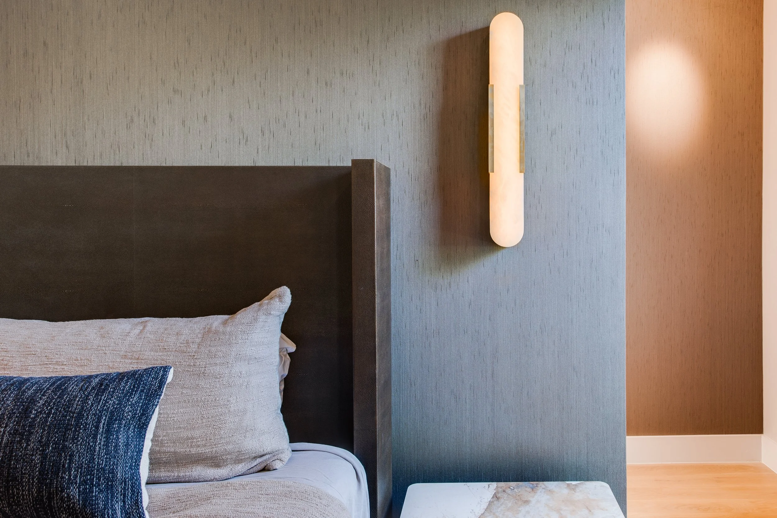 The intentionality of the creation in this project was to balancing masculine elements with feminine touches to create sense of wholeness. By implementing layering in sumptuous textiles throughout the space to amplify the softness of the surfaces, dancing between bright and dark color tones, stunning sink rug, jeweled gold tone sconces, silk velvet drapery to create a true sanctuary experience.